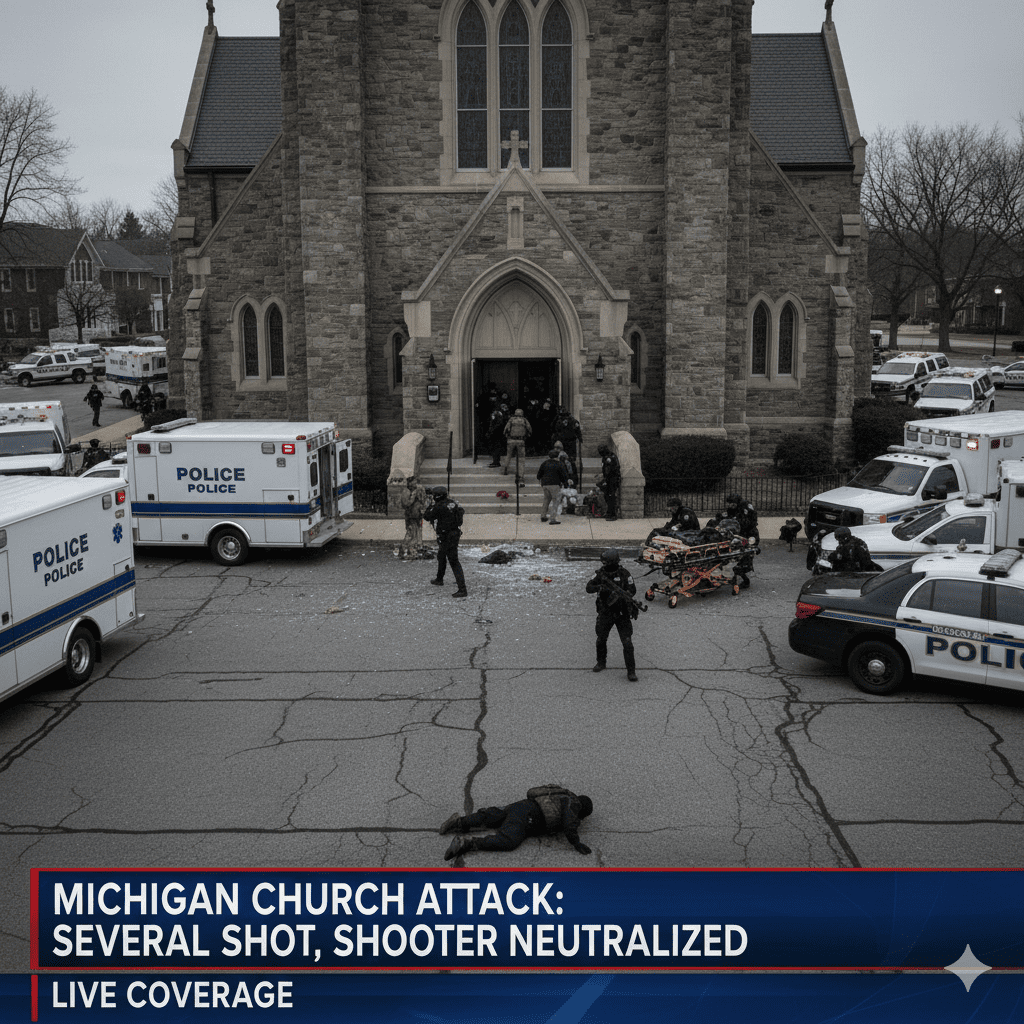 A Michigan church attack occurred on Sunday at the Church of Jesus Christ of Latter-day Saints in Grand Blanc Township, resulting in multiple people being shot. Authorities confirmed the shooter has been neutralized, and the church building was set on fire during the incident.